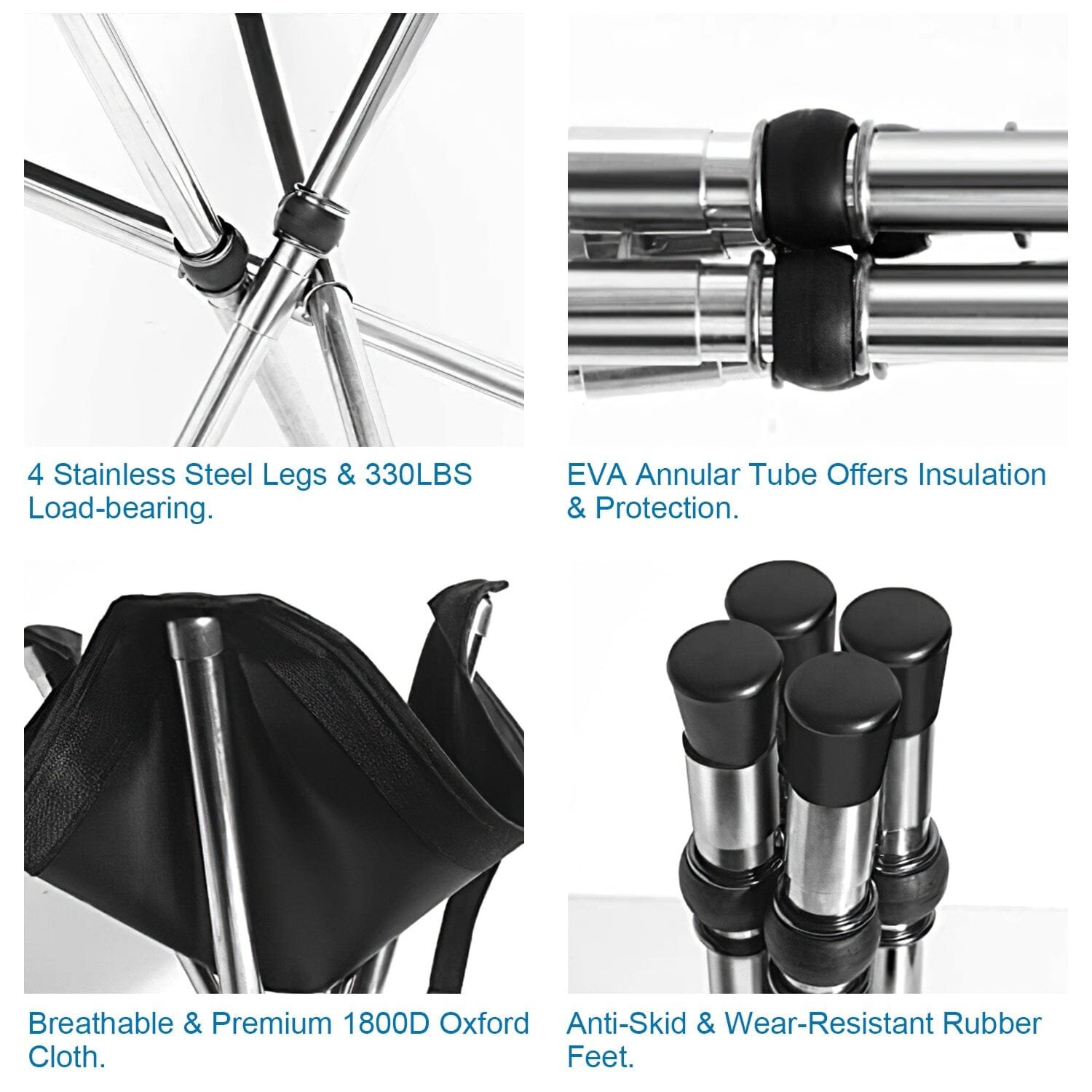 • 330LBS Load: Four-legged design can provide better support. Made of great rubber feet covers and thicker chair surface. offers our camping stool outstanding skid resistance and up to 330lbs load-bearing capacity.
