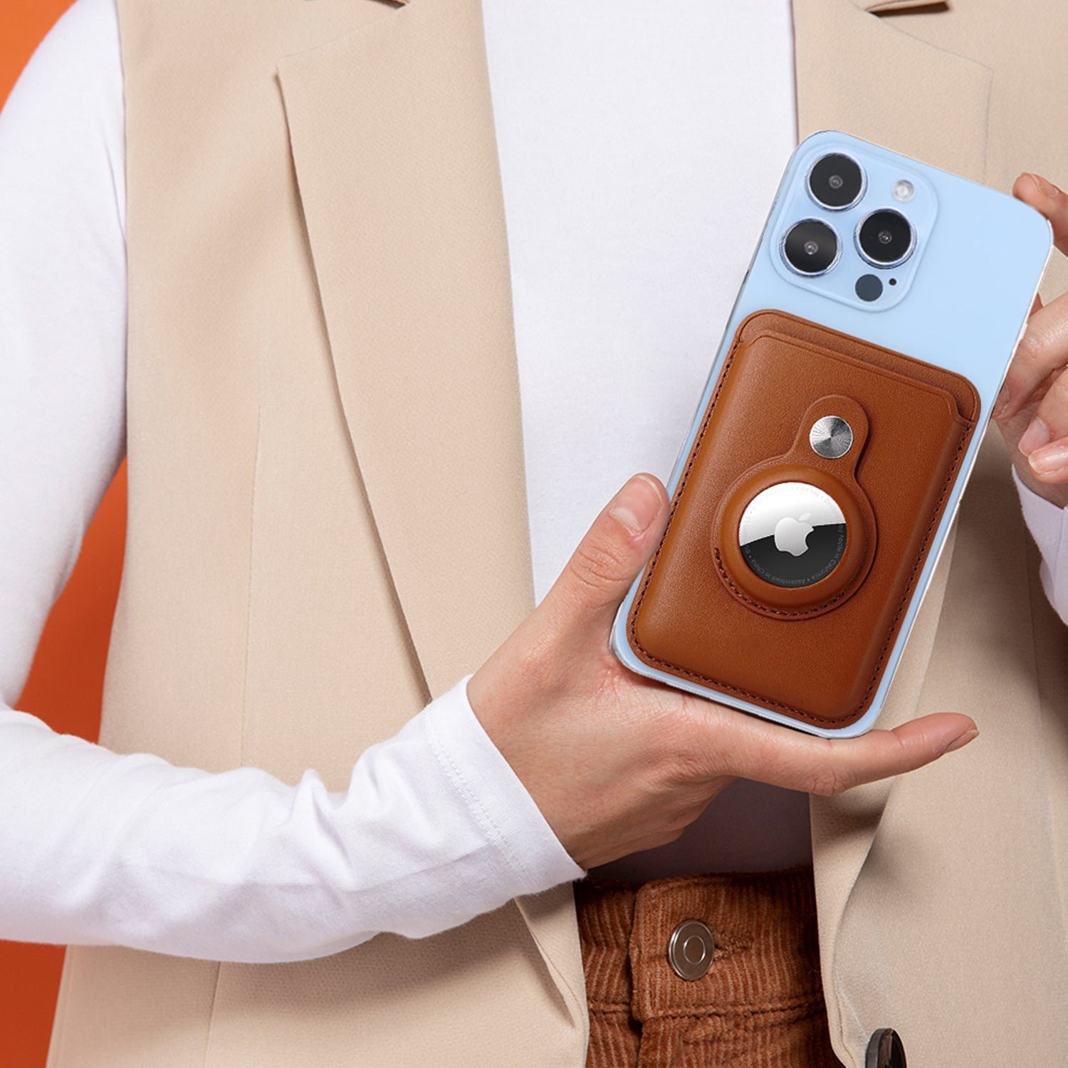 The MagSafe wallet contains a built-in AirTag holder. which enables you to track and find your important cards anytime with an iPhone.
