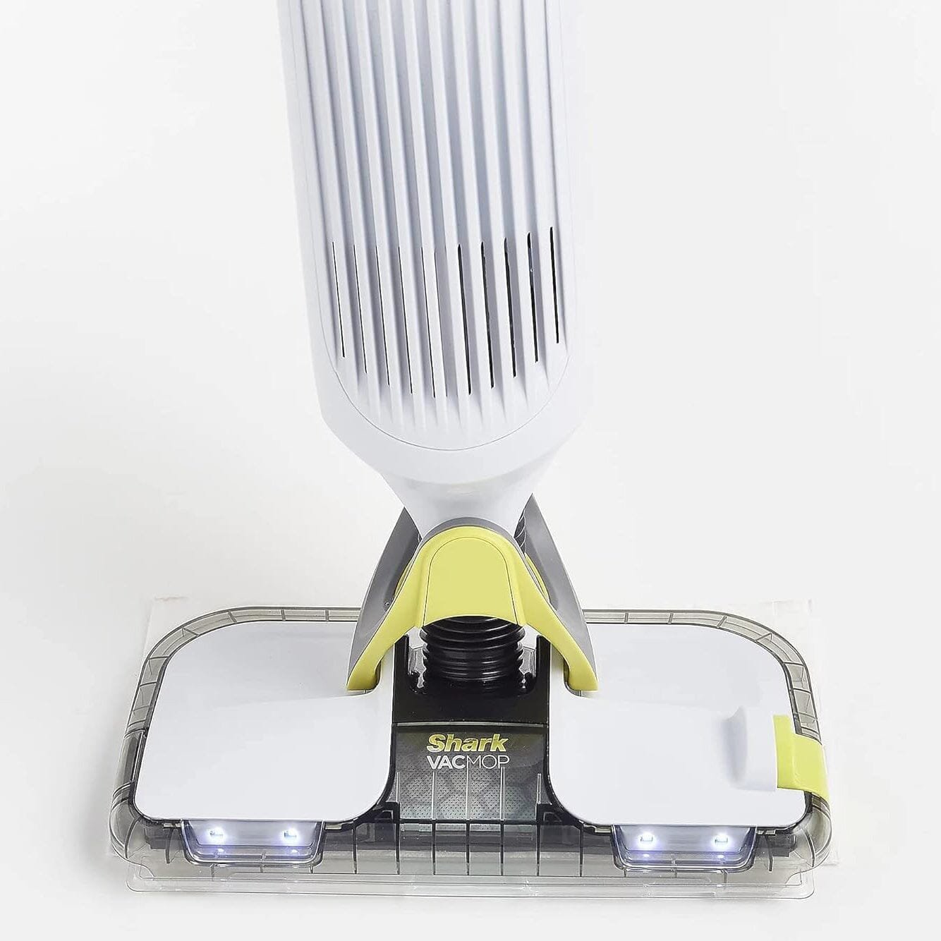 Vacuum Mop with Disposable Pad The Shark VACMOP Pro combines powerful suction for dry debris & spray mopping for wet stuck on messes in one no-touch disposable pad. VACMOP Pro features headlights + magnetic charger and comes with everything needed to complete the clean: Vacuum mop with powerful suction Clean stuck on grime with the VacMop Powerful spray mopping Vacuums with powerful suction Ultra-powerful suction locks away dirt. debris. pet hair. and more in the pad’s dirt chamber. Spray mops for finished floors Break down stuck-on messes with spray. absorb spills. and leave floors spotless. Get a complete clean Combine VACMOP disposable pads and cleaning solutions to tackle messes??specifically designed for a complete clean on sealed hard floors. Everything you need in one disposable pad. Powerful Vacuum suction Lock in dirt with this vacuum mop Absorb wet messes Toss away the pad for easy clean up Vacuum No more pushing debris around like traditional mops??powerful vacuum suction locks away all types of debris.LED headlights Automatic lights illuminate hidden debris in corners. crevices. and under furniture in your home. Lightweight and compact At less than 5 pounds. VACMOP is perfect for grab-and-go cleaning and easy storage. Magnetic charger Clicks into place on contact to make charging easy.