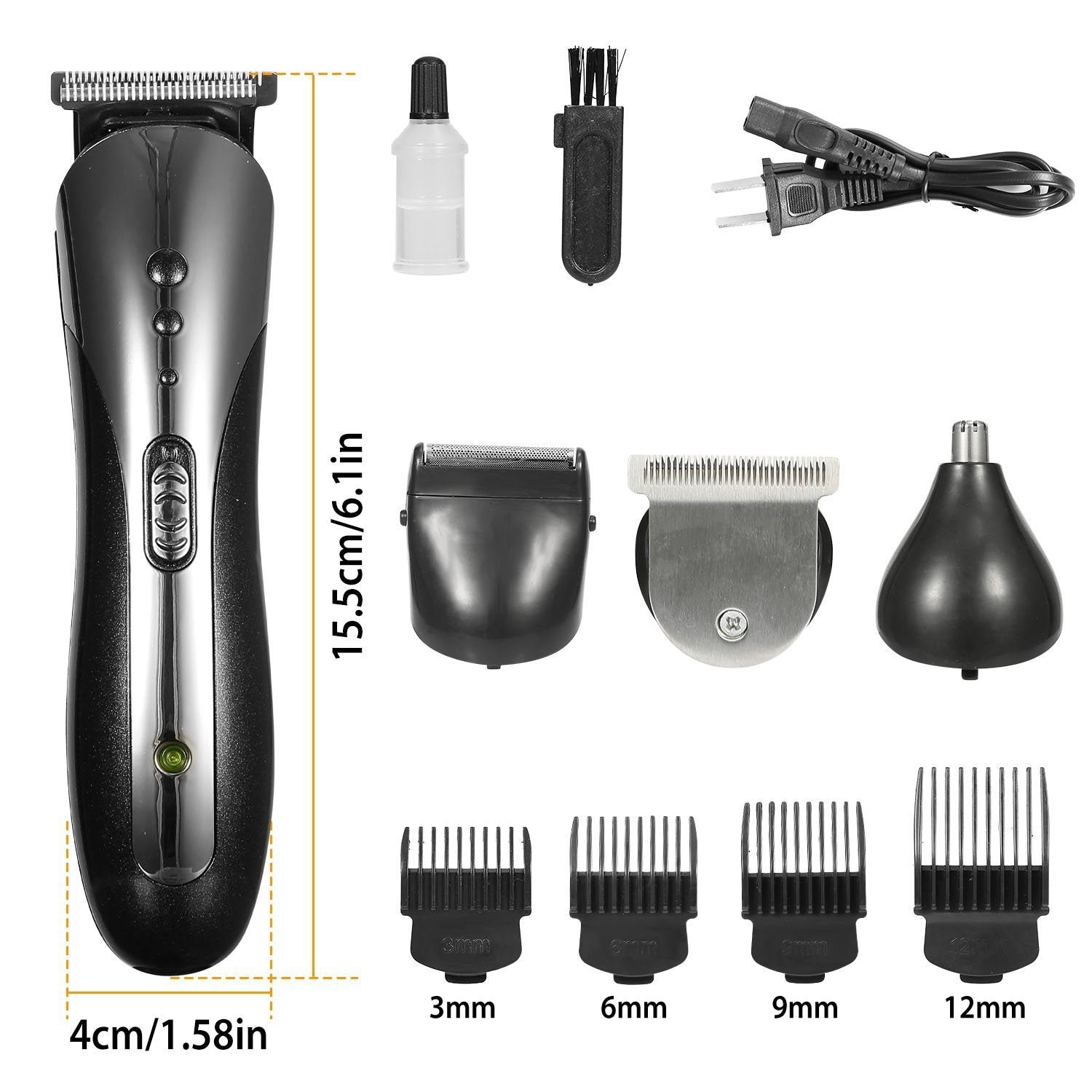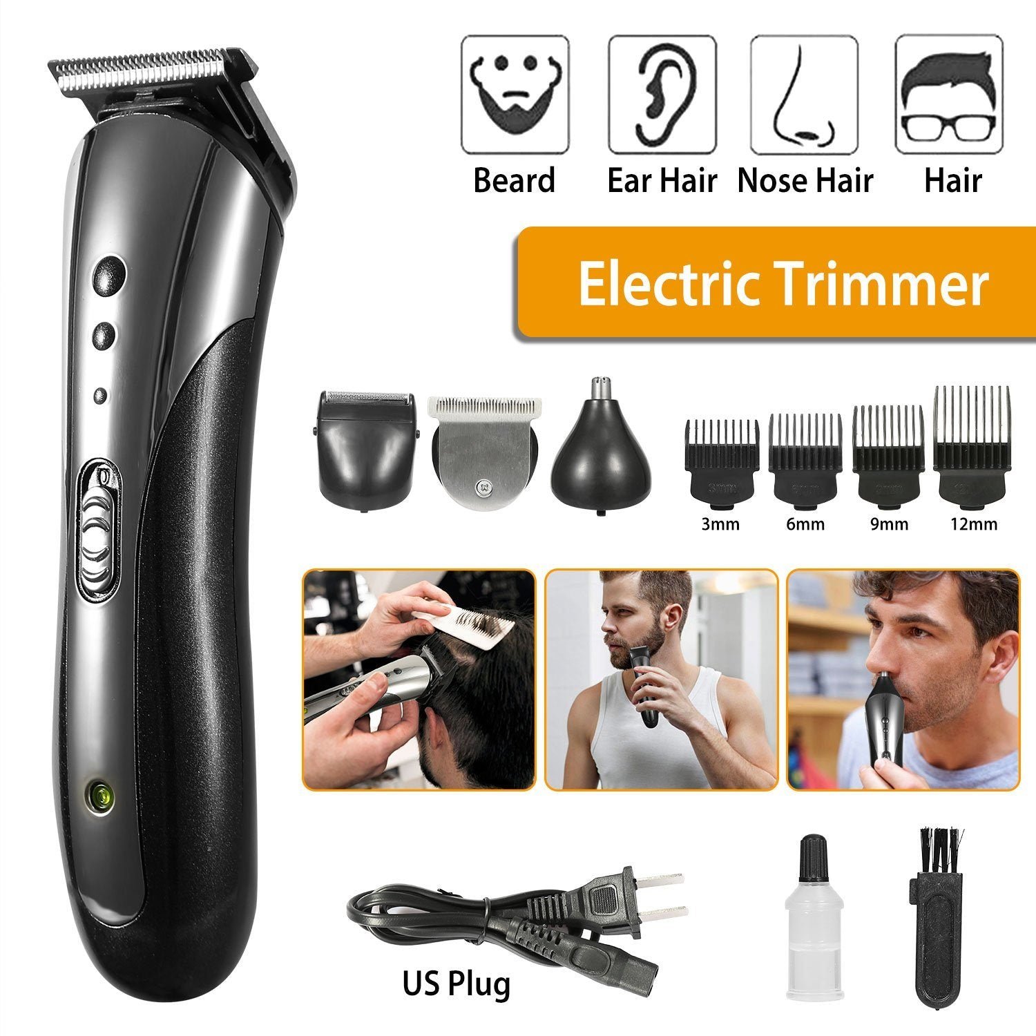 - 3-in-1 Grooming Kit: Whether you trim your hair between trips to the salon or barber. need beard or nose hair trimmers. or a complete hair cutting kit. our grooming kit comes with nose/beard/hair trimmer head. trim all the unwanted hair in your nose. side beard and head or other body parts. Suit your different needs.