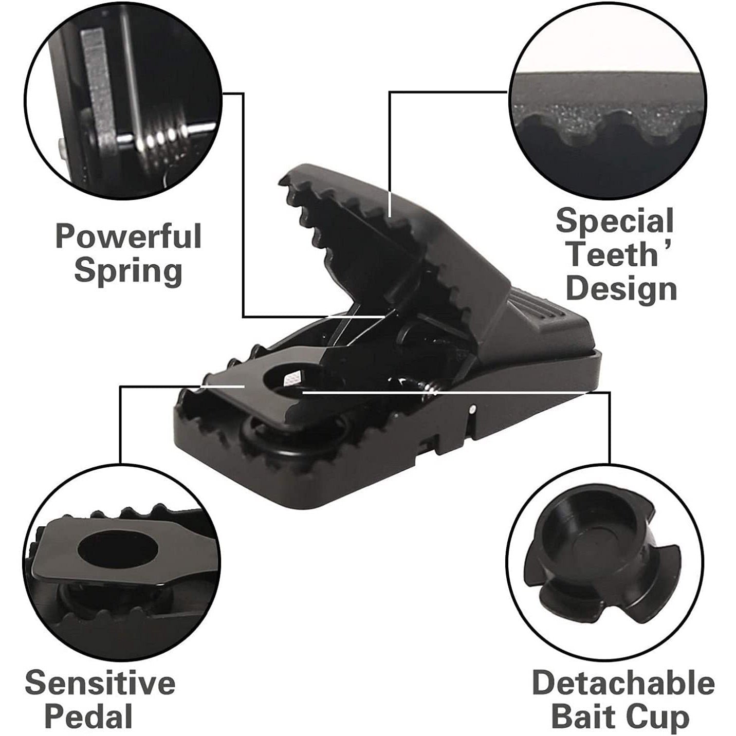 - Efficient and high sensitivity: These mouse traps are more effective and safe compared to traditional wood or metal traps. Only 0.025 lbs of weight can trigger the trap. With powerful stainless steel spring. these traps are suitable to catch small mice.