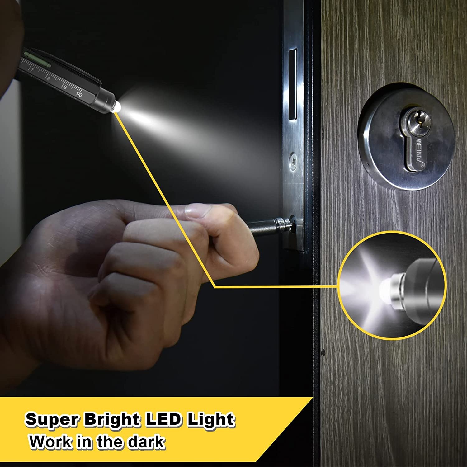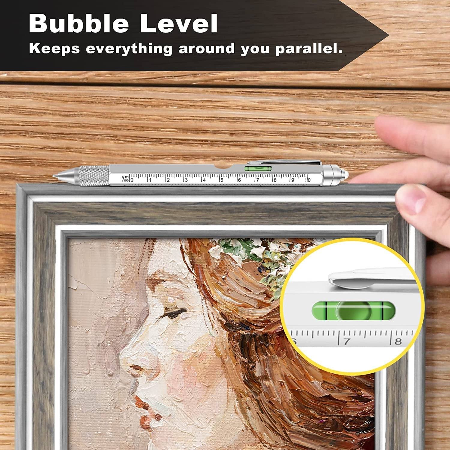 - Fully Functional – The multitool pen is equipped with 9 useful functions. bright LED Light. precision ruler. bubble level. bottle opener (phone holder). stylus. ballpoint pen. two-head screwdriver. The tool pen integrates multiple functions into one. making your work easier.