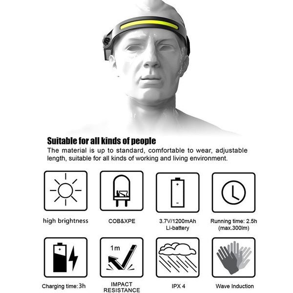 - Wave Induction: With a side wave induction sensor and one touch buckle.easy to work outdoor when wearing this headlamp.