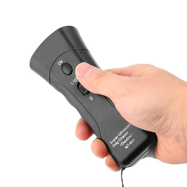 In normal situations. it can be used as a normal flashlight to illuminate at night. - Ultrasonic wave reaches up to 125db. Audible to dogs but not to humans.