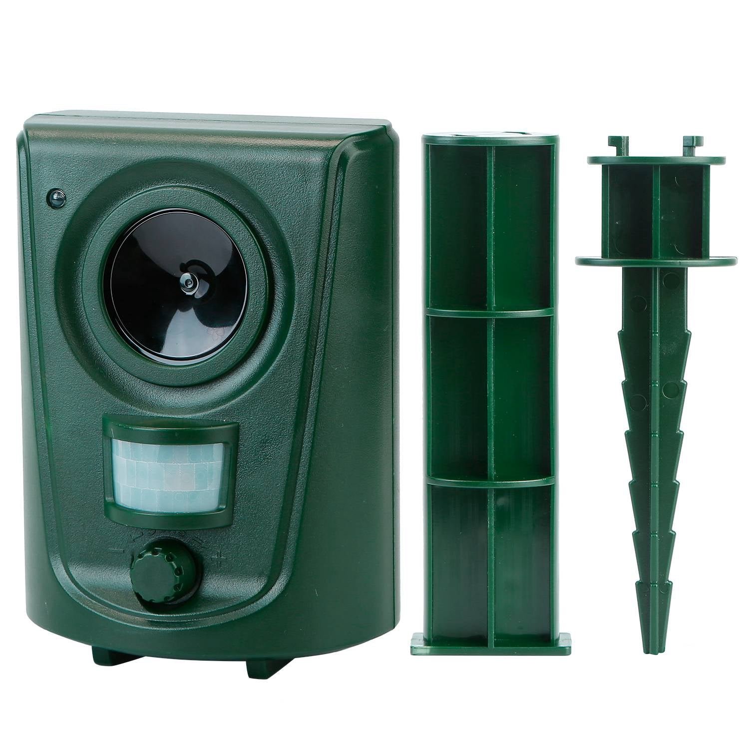 - Humanistic & Versatile: No traps. no harm to human or animals and chemical free. Adjustable frequency and sensitivity dials allow you to get rid of cats. dogs. birds. mice. squirrels. rats. skunks. raccoons. birds. deer. mosquitoes and more. Or set it to repel all of them at the same time.