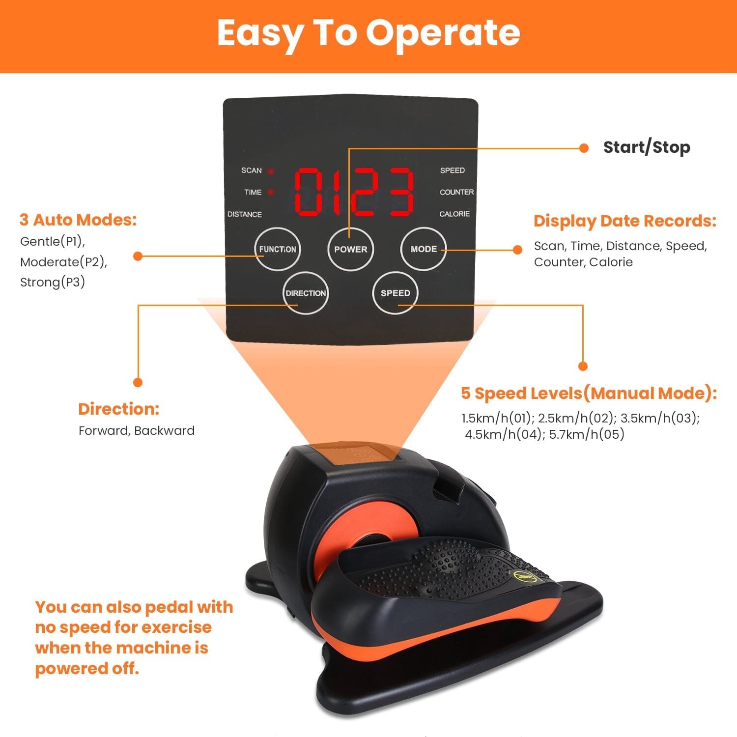 Under Desk Elliptical Machine Seated Pedal Exerciser with 5 Speed Levels 3 Auto Modes