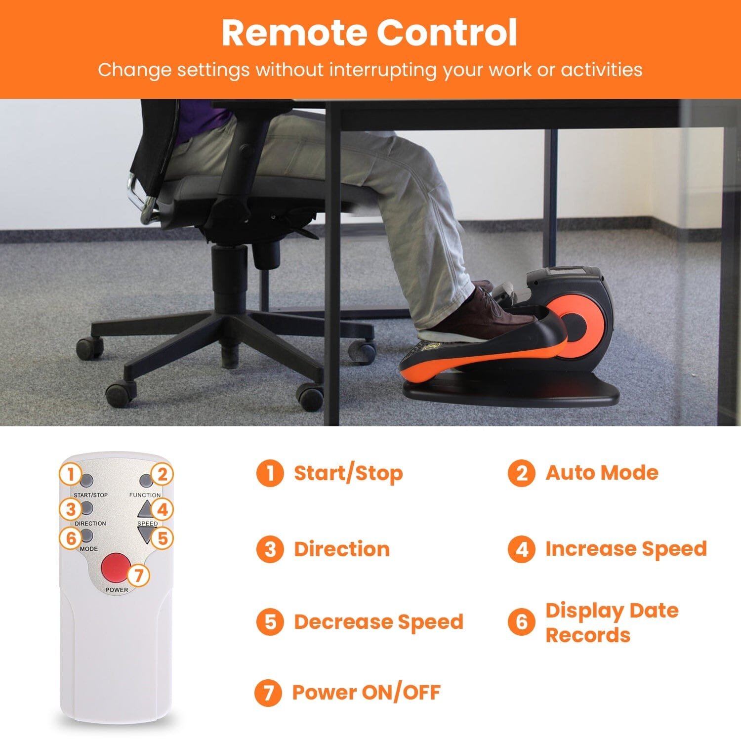 - Ease of Use: Featured with the combination of remote control and button control. our under desk stepper allows for straightforward operation. enabling you to change settings without interrupting your work or activities. And. with a 30-minute auto shut-off feature. you don’t have to worry about leaving it on accidentally.