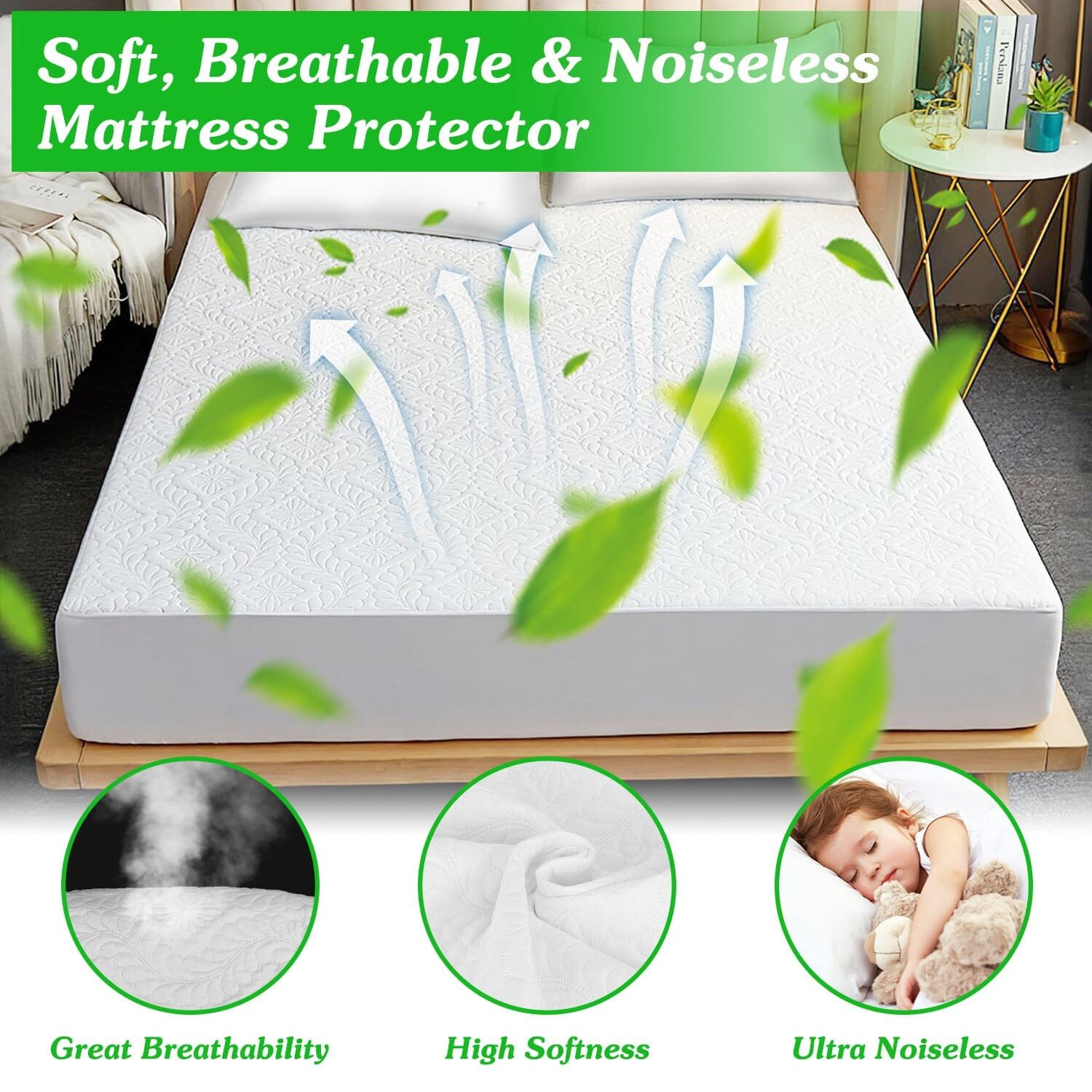 - Soft & Skin-Friendly Cotton: Crafted from soft and comfortable cotton material with textured pattern. our breathable mattress protector ensures optimal airflow. preventing moisture build-up and maintaining a comfortable sleeping temperature. Additionally. skin-friendly and odorless material is gentle on sensitive skin of your little one.