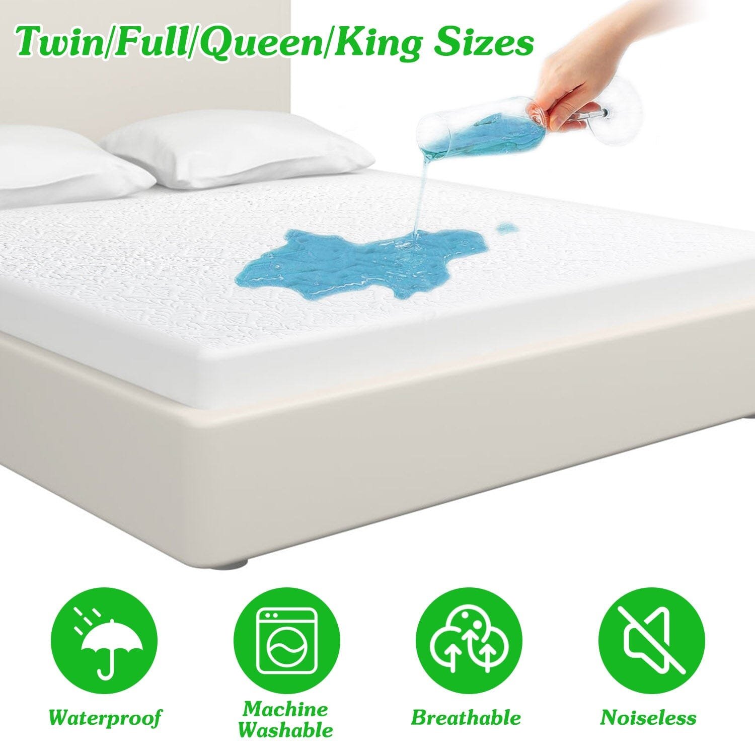 - Mattress Protector in 4 Standard Sizes: Available in 4 different sizes(twin. full. queen and king). our standard-size mattress protector securely surround every corner of your valuable mattress. An ideal addition to any bedroom. providing you with the peace of mind that your mattress is well-protected and you can enjoy a restful night’s sleep.