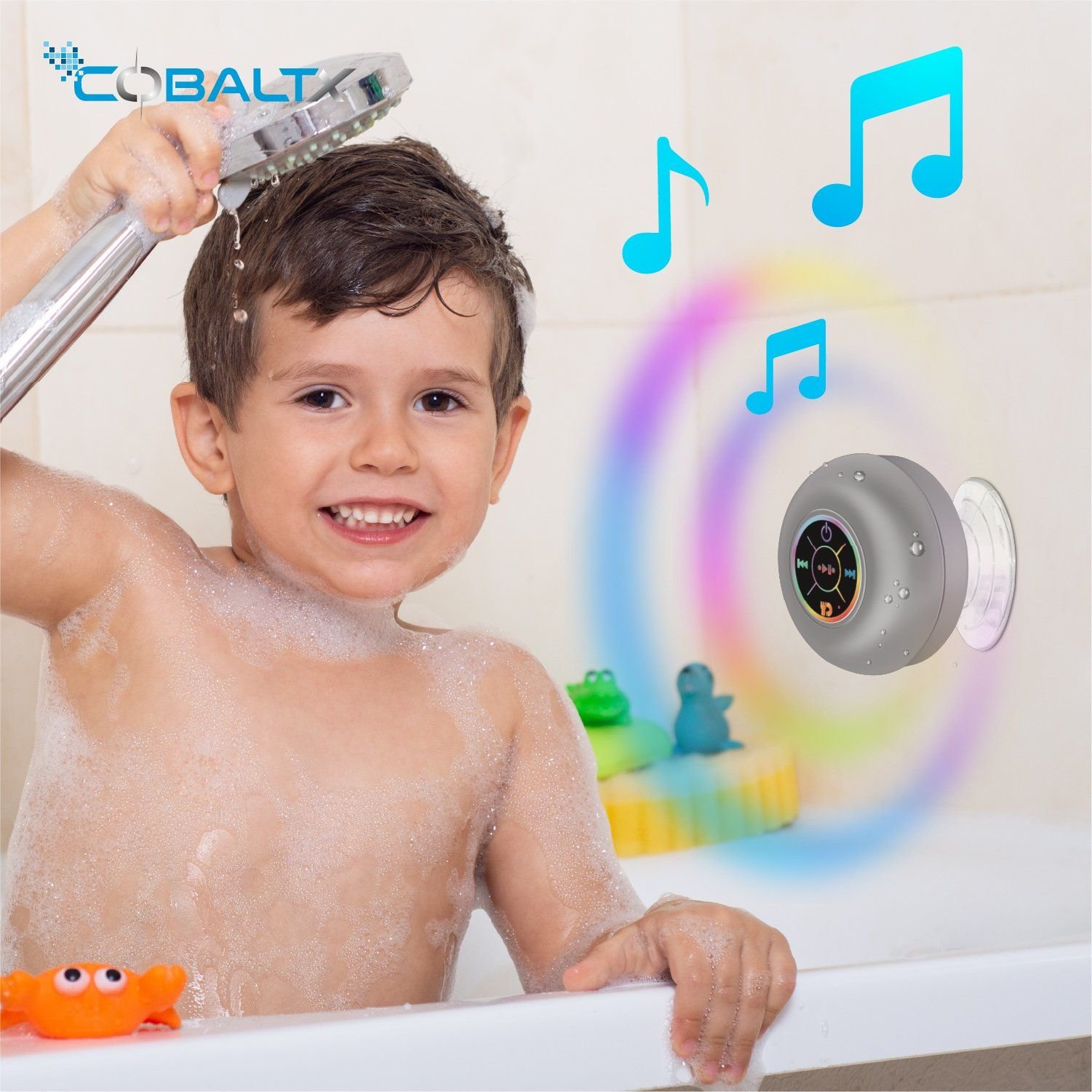 - Comes with a suction cup so you can easily put it in the shower or tub and really enjoy it. Kids LOVE this.