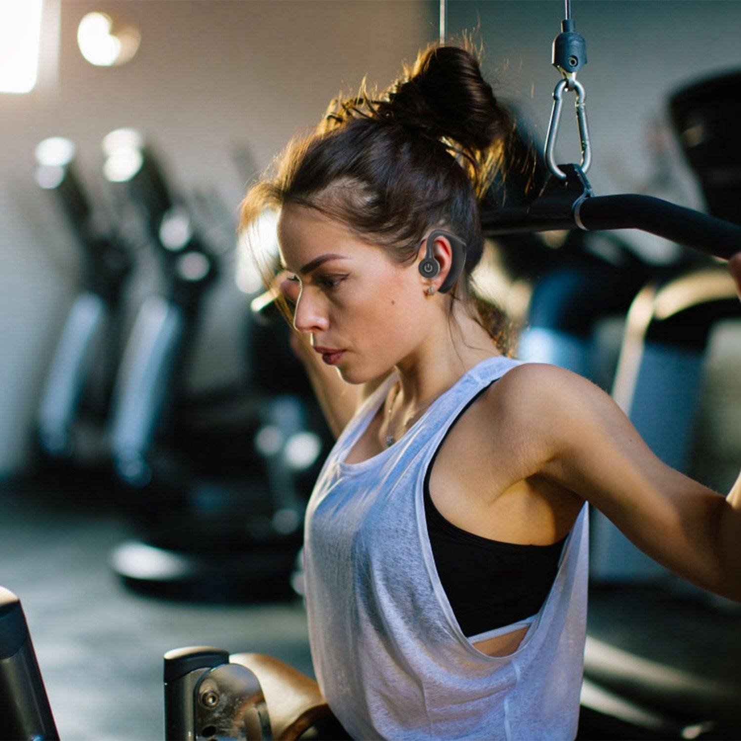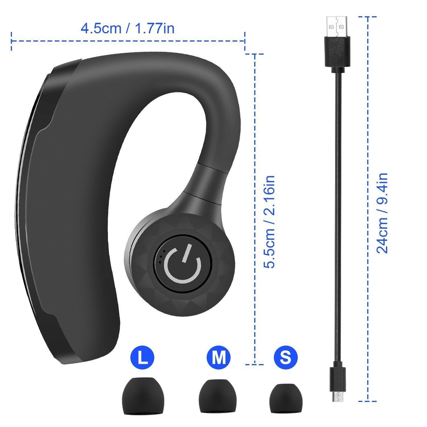 - STABLE & COMFORTABLE WEARING EXPERIENCE: 180??Rotation design of ear tips adjusts to your auricle and fits best in-ear status; 270??Rotation design of ear hook enables earbuds to fit both in your left or right ears. Designed with durable hooks and premium silicone gel ear tips(S/M/L) providing you comfortable long time wearing experience.