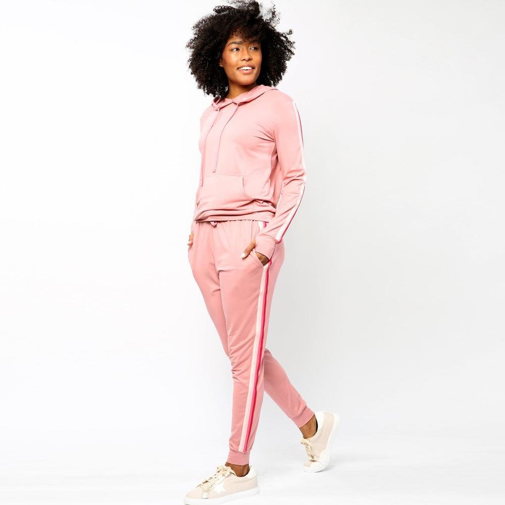Meet your new everything pants. Become one with your couch. take on a caffeine buzz. shop until you drop. or work up a sweat sparkle in these super soft. lightweight joggers with sporty accent stripes and 4-way stretch.