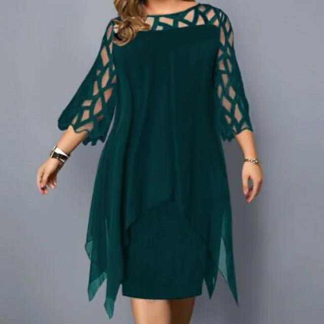 Elegant dress can be worn with fashion jewelry and pair with simple high heels. You will enchant the whole crowd.Long sleeve. two layers. plus size dress. zipper back. mid length. elegant style. This dress is Great for wedding. Party Cocktail. casual. daily. work and so on.