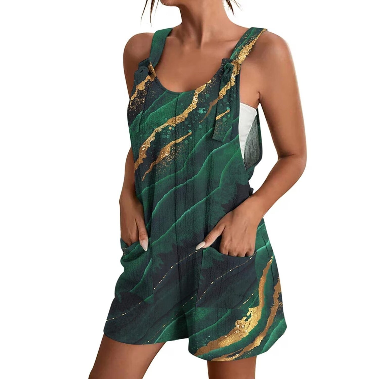 Womens V-Neck Strap Pocket Jumpsuit